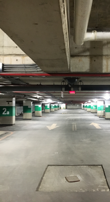 The underground parking of the Côte-Sainte-Catherine building at HEC Montreal includes five levels. In compliance with the Safety Code – Building Chapter, a regulatory inspection was conducted in 2015 to ensure public safety. SIMCO (formerly COSIGMA) was commissioned to assess the extent of observed damage and define the required rehabilitation work. Due to an asphalt mastic covering the top surface of the concrete slabs, additional investigations were necessary.