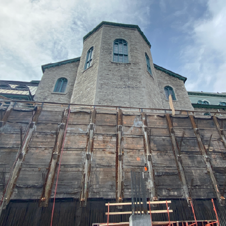 Évaluation structurale, travaux de stabilisation et plan de réparation de l’église du Gesù suite à de graves dommages causés par des mouvements de sol dus à des travaux de construction adjacents.